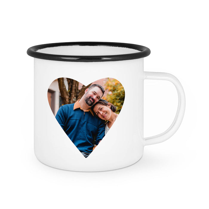 Emalipintainen metallimuki kestää konepesun, mutta kuva kestää vielä pidempään, kun se pestään käsin.