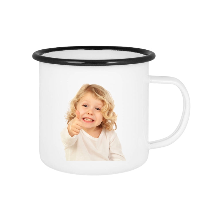 Emalipintainen metallimuki kestää konepesun, mutta kuva kestää vielä pidempään, kun se pestään käsin.