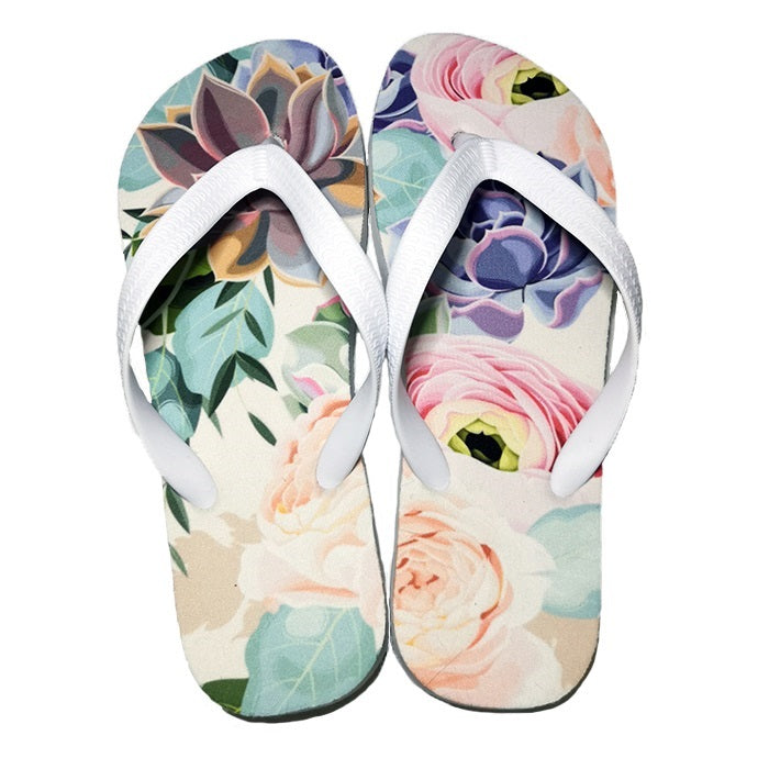 Hempeät pionikuvioiset varvassandaalit kauniisiin kesäpäiviin.